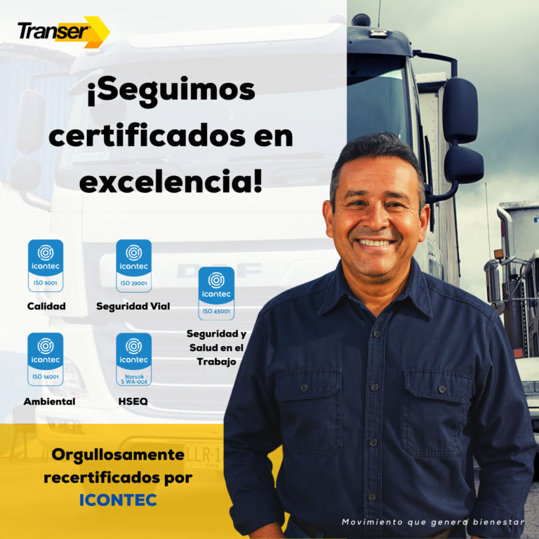 En Transer hemos sido re-certificados por ICONTEC en los cuatro sistemas más importantes: 🌟 Calidad (ISO 9001)🌱 Ambiente (ISO 14001)🚦 Seguridad Vial (ISO 39001)🛡️ Seguridad y Salud en el Trabajo (ISO 45001) ✨ Además sumamos la certificación NORSOK-WA-S en HSEQ (Salud, Seguridad, Ambiente y Calidad). Este reconocimiento refleja el esfuerzo y compromiso de todo nuestro…